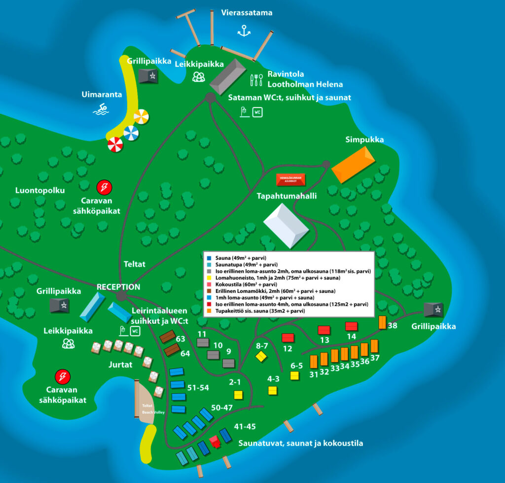 Lomahuoneistot sijaitsevat eri puolilla Lootholman aluetta. Allaolevasta kartasta löydät eri lomahuoneistojen sijainnit ja tarkemmat kuvaukset kartan alapuolelta.